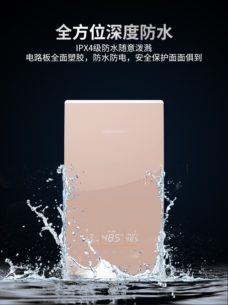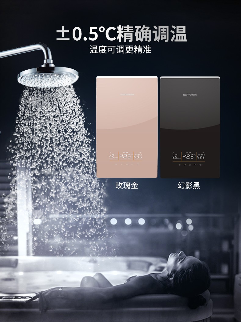 德恩特DTR-P5大水量系列即熱式熱水器 幻影黑、玫瑰金V12系列